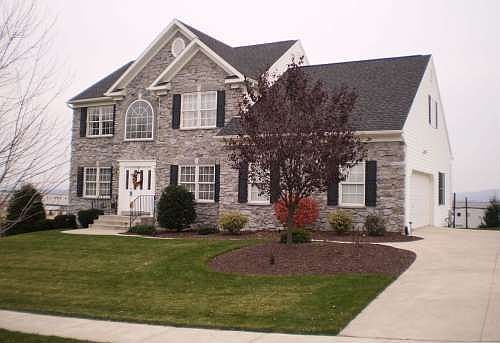 Stone front colonial on half acre lot with finished basement and pleasing upgrades. The home was built with Andersen windows, a real garage, wood and tile flooring, Corian counter and lovely teaberry maple cabinets. 9' ceilings, large master suite with 2 walk ins and a 6' whirlpool tub. The finished basement is a walk out and has a full bath. Excellent condition and location.