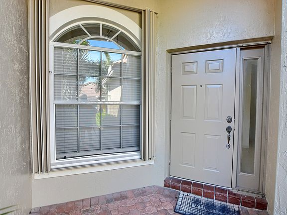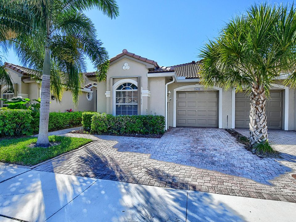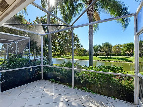 Enjoy the lake views from this one story two bedroom, 2 bath garage villa. Kitchen features white cabinets and stainless appliances. Light and bright master bedroom. Cozy living room with access to screened patio. Tile floors through out. Accordion hurricane shutters. Roofs replaced in 2022. A/C and water heater 2017. Mizner Pointe has 24 hour manned gate, beautiful clubhouse with pool, fitness, tennis court and tot lot. Minutes away for Florida's Turnpike and 95!