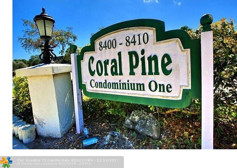 BEAUTIFUL 2 BEDROOM 2 BATH CORAL PINE CONDO IN CORAL SPRINGS! GARDEN AND POOL VIEWS. SECOND FLOOR. CORNER UNIT. ALL AGES. NO PETS. RENT LIMIT. UPDATED BATHROOM. CONDO FEE ONLY $326.00 PER MONTH INCLUDES RESERVES. VERY WELL KEPT COMMUNITY. HEATED POOL. CLUB HOUSE. 10% DOWN PAYMENT REQUIRED. ASSOCIATION REQUIRES CREDIT SCORE OF 650. TRUCKS OK. NO MOTORCYCLES. WASHER/DRYER INSIDE UNIT.