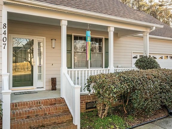 This home is in pristine condition near Streets of Southpoint and I40. Super access to everywhere. One level home with 2 car garage, large, private fenced .35 acre yard. Plantings are beautiful, see photos from spring time. Enormous deck. Inside you will find beautiful hardwood floors in the entryway, dining room, family room and hallways. Formal dining room, eat in kitchen with granite countertops, 6 burner Wolf range, almost new refrigerator. Don't miss the view of from the kitchen. The family room boasts cathedral ceilings and a gas log fireplace. The bedrooms are all generous. The third bedroom has hardwood floors and the Master and 2nd have carpet. The Master Bathroom has been updated. You will love it. Freezer and refrigerator remain.
