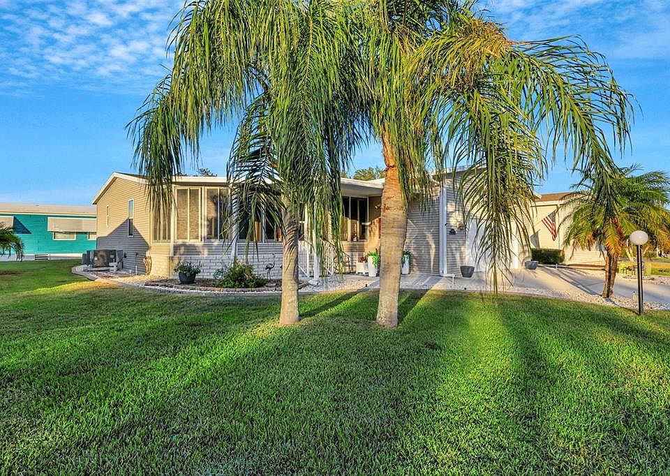 Experience the best of Florida living in this beautifully maintained 3-bedroom, 2-bath home with a split floor plan, located in the desirable 55+ gated community of Imperial Lakes Estates. This property sits on land you own, offering a lifestyle of comfort and convenience. Step inside to find thoughtful features, including built-in shelves, soaring ceilings in the oversized garage, and a primary bathroom equipped with a dual vanity and a handicap-modified shower. Recent updates ensure peace of mind, with a roof just 2 years old, appliances ranging from 2 to 4 years old, a 1.5-year-old A/C system, and a whole-house surge protector. Outdoor living shines with a spacious 25x11 enclosed lanai, an open patio beside the garage for outdoor furniture or golf cart parking, and a small rear patio. The oversized garage, complete with a workbench and extra-high ceilings, offers ample storage and workspace. Enjoy the low-maintenance lifestyle with a quarterly fee of only $514, which includes cable and internet, plus average monthly utility costs of $85 for water/sewer/trash and $105 for electricity. Ideally located near the interstate and shopping, this home is move-in ready for immediate possession. Park approval is required for buyers. Community Amenities include 2 heated pools, spa, tennis courts, shuffleboard, bocce ball, 12,000+ square foot clubhouse, library and on site manager. Lots of activities for everyone to enjoy and just minutes from beaches, downtown Bradenton, Ellenton Premium Outlet Mall, Sarasota and only 45 minutes to downtown Tampa. Schedule your private showing today and come see why the Florida lifestyle is so irresistible!