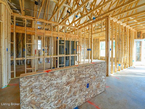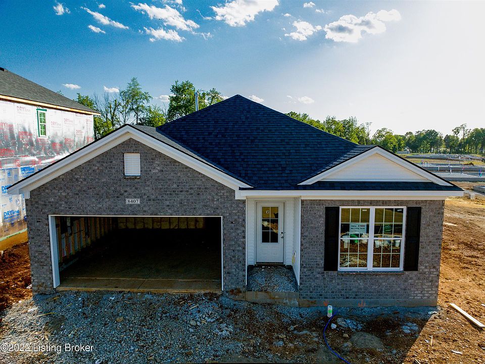 The Gaines Mill, part of the Trend Collection by Ball Homes, is an open layout ranch plan with three bedrooms. This split bedroom design places two bedrooms and the hall bath off the entry, and the primary bedroom suite at the rear of the home. The central kitchen offers both a breakfast area and countertop dining at the island and opens to the family room complete with corner gas fireplace. Kitchen includes granite countertops, full wall backsplash and stainless appliance package including smooth-top range and side-by-side refrigerator. The primary bedroom suite includes a bedroom with large closet and spacious bath with tub/shower, window, quartz vanity top and linen storage. The entry from the garage is a mudroom with built-in drop zone that adjoins the utility room on one side