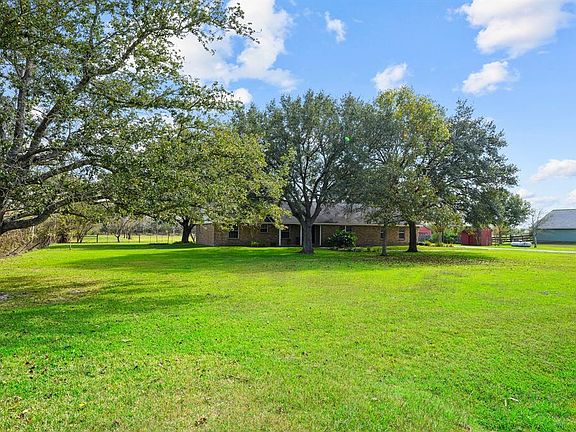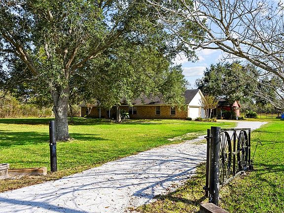 Oh my this is THE ONE! Amazing 2.6 acres located in the sought after community of Manvel under grand oaks...One story, original owner home with long walk way and front porch welcoming you HOME! Formal dining room with storage closet and adjacent wet bar serving area, spacious family room with vaulted ceiling and fireplace, galley style kitchen with built-in appliances and tons of cabinetry, oversized breakfast nook overlooks backyard. Bedrooms are a great size and the storage throughout the home is great! The property offers a well house with electricity, office/flex building with front porch is paneled & has AC, HUGE shop with half bath, electricity & water, separate RV storage, dog run & fenced back pasture with second gated entrance in back as well! You will not want to miss out on owning this piece of country paradise! Call today for your tour!