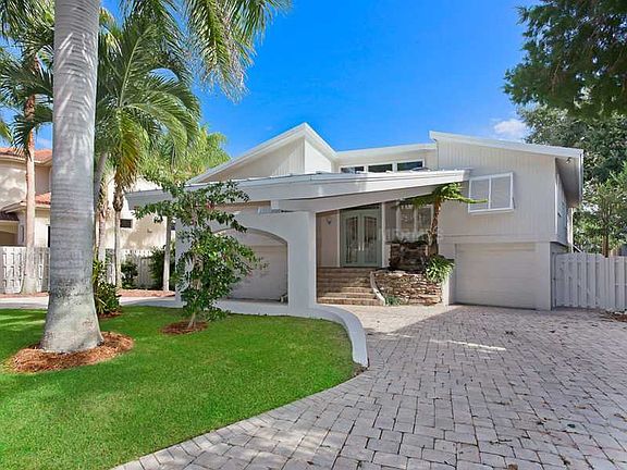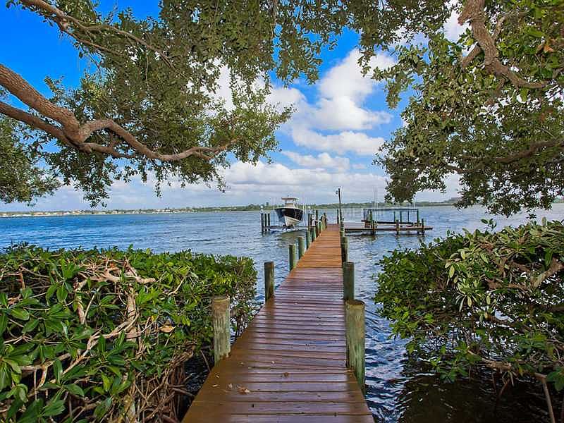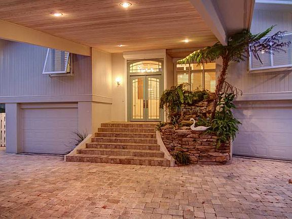 AWC - Taking Backup Offers - On nearly half an acre, this gated and walled Siesta Key bay front estate is situated in a very private and stunning setting on nearly 75' on Little Sarasota Bay. Upon entering through the gates, a beautiful paver driveway leads you to a tranquil waterfall perfectly located by the double entry doors. This elevated home was completely recreated showcasing the finest appointments & was masterly planned to include newer plumbing/wiring/windows/metal roof and much more with completion in 2000. The spacious living room features volume ceilings and expansive terrace overlooks the pool and bay. The dining room is adjoined by the gourmet kitchen presenting the finest maple wood cabinets, granite counter tops and high end appliances. The master retreat is separate from the other rooms offering a sitting area and a delightful master bath for quiet enjoyment. Among the other highlights are multiple terraces, a private en-suite on the upper level, Brazilian cherry and porcelain floors, storm shutters, central vacuum system and mature landscaping. Most rooms have a view of the heated pool and spa providing generous space to entertain guests. This private paradise is a boater's dream featuring two large docks with lifts that can accommodate up to a 37' & 21' boat outfitted with seating ideal for fishing or gazing at the Intracoastal Waterway, fresh water to dock & electric. The lower level offers abundant storage and contains a 3-car garage. Siesta Key beach is minutes away which makes this a perfect spot in paradise.