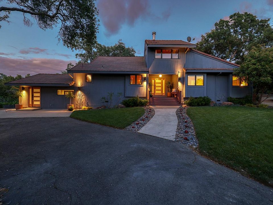 This spectacular Mid-Century Modern, Granite Bay home w/new attached, permitted ADU, sits on a .87 acre tree-studded lot, approximately 1/2 mile to Folsom Lake w/ boat access. Custom built by CA Energy Commission architect in 1978, this property has been updated inside & out by the 2nd owners of this home. They have invested over 100K in landscaping alone as is obvious in both the front & backyard w/complete irrigation & drip system. The ADU w/ separate address & entry could be an income opportunity or a separate space for family & guests, boasting a full kitchen including gas range & hood, dishwasher & sink, full bath, fireplace, washer/dryer hookups, & access to own patio w/ 8' sliders that open completely bringing the outside in. Inside of home has been updated w/ stainless steel appliances, quartz countertops, luxury vinyl plank flooring throughout, bathrooms remodeled w/quartz counters, showers w/designer tile, & entire interior painted. Loft upstairs features a Swedish wood-burning fireplace, & approx 265 sq. ft. upstairs that sellers finished & is currently used as a guest room & office. Wood Pella windows add to the architectural design. There is plenty of room to store your boat/RV w/easy to drive in & out from both sides of Oak Knoll Dr. The Two sheds included. No HOA!