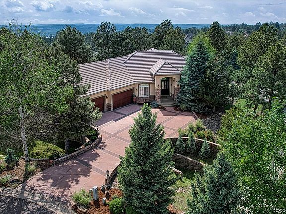 A very special property. Cul-de-sac, privacy, and mountain views. Luxurious living could be yours in this stylish and comfortably upgraded Parker residence tucked away on a large secluded cul-de-sac lot! Past the artisan entry, a stunning interior welcomes you with neutral tones, plantation-shuttered Pella windows, newly installed hardwood flooring, and radiant heating. A soaring ceiling is anchored by the living room’s stone fireplace, inviting you to snuggle up on cooler evenings. At the heart of the home, the chef’s kitchen treats you to top-notch stainless steel appliances, including a GE Monogram oven, KitchenAid refrigerator, and Bosch dishwasher. Abundant designer cabinetry, granite countertops, updated fixtures, and a multi-seat island complete this delightful culinary space.