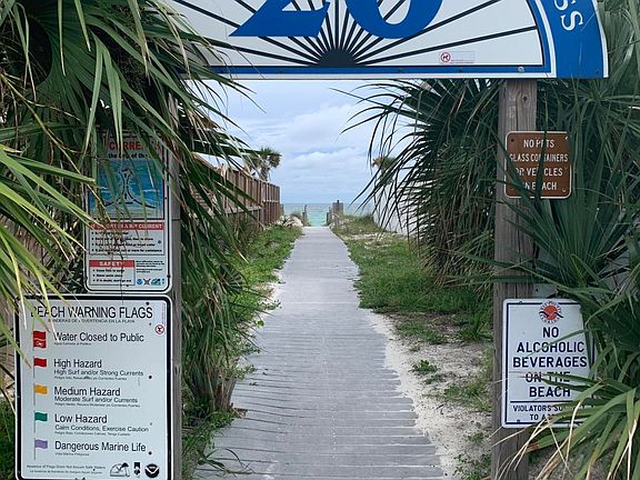 Located on the Gulf side of Thomas Dr. Steps to the beach and public access #20. Beautifully remodeled townhome. Kitchen boasts with all new cabinets, white granite counter tops, ceramic tile floors , white appliances. Large laundry room located off of the kitchen with new cabinets. Master bedroom has updated double vanities with new counter tops. Hardwood flooring throughout the upstairs bedrooms. All new light fixtures throughout. All new paint inside. Brand new A/C. The back yard has separate outdoor shower and storage. Privacy fenced back yard with swimming pool for the resort. Second floor master bedroom has a peek of the ocean. HOA includes garbage pickup twice a week, basic cable with HBO, lawn maintenance, pool maintenance, HOA insurance. Inside and outside pest control.