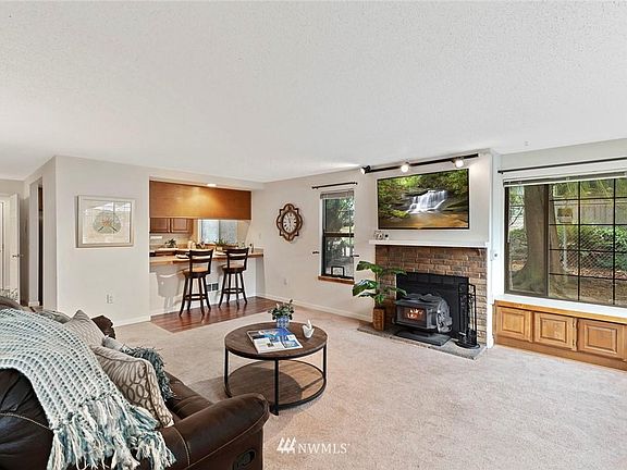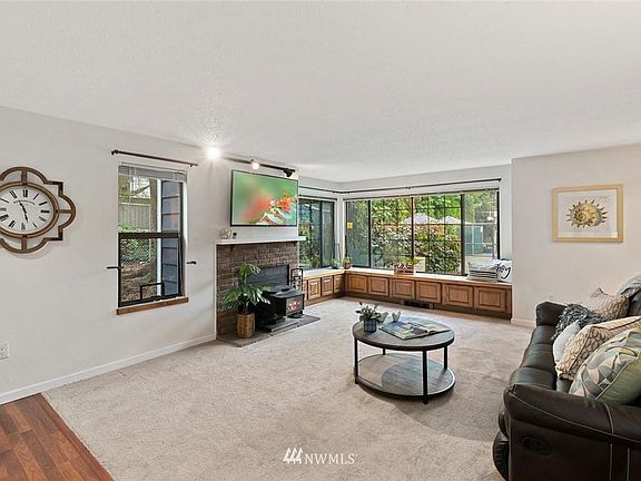 Look no further! The search is over! Located in Cascade Village Park I, a charming tree-lined street near Walter E Golf course, this fabulous 1bed/1bath GROUND FLOOR condo is roomy and even has a 1 car ATTACHED garage! Nestled at the END of the building, you'll love the corner windows with views of greenery and the pool. Huge bedroom can easily accommodate a king bed, has a big walk-in closet and even has a stack washer and dryer! Kitchen is roomy, has lots of cabinets, a pantry and counter seating from the opposite side. Large living room features wood burning insert and handy window seat for extra storage and a convenient spot to sit and just relax. Great location close to Boeing and major freeways.
