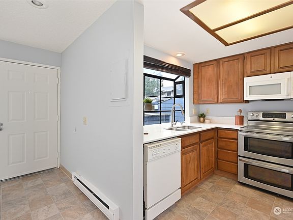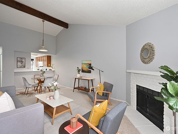 Affordability! Fantastic Value! Perfect 2 bed 2 bath 1000 sqft condo with patio and deck, and tons of space with it's own attached garage! Newly painted, new carpet, new granite counters, and vaulted ceilings really bring this place to life! Deck overlooks the outdoor pool just near the wood burning fire place. Primary bedroom with 5 piece bath and walk in closet! Located in the heart of Everett, excellent access to Boeing, dining, shopping, freeways, public transit and more! No pet restrictions and no rental cap and low HOA dues make this a great investment opportunity! Come see today!