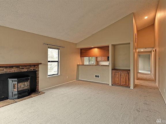 Nice spacious top floor end unit 2 bed 2 bath condo featuring cathedral ceilings, pellet stove, cozy built in seating next to garden window, french doors off master onto the balcony, master with large vanity, walk in closet, plus extra bypass closet. Complex features include outdoor swimming pool, Jacuzzi/sauna and much more! Excellent location with easy access to Boeing, shopping, and I-5. 1 car garage with opener.