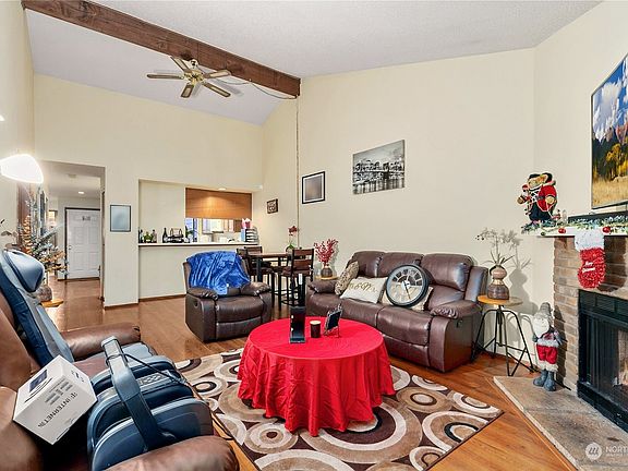 Discover the immaculate blend of comfort and affordability in this 2 br, 2 bath condo at Cascade Village. Boasting an expansive 1012-square-foot layout with vaulted ceilings and a charming fireplace, this top-floor unit offers an oversized bedroom with ample storage. Relax on your private deck, surrounded by tranquil tree-lined views. Conveniently located in Everett's heart, enjoy easy access to Boeing, Fluke, dining, shopping, freeways, Paine Field Airport, and public transit. Indulge in the community pool, sauna, and hot tub, with HOA-covers water/garbage/sewer costs. Pet-friendly with no rental cap. This move-in-ready condo is a cost-effective investment.