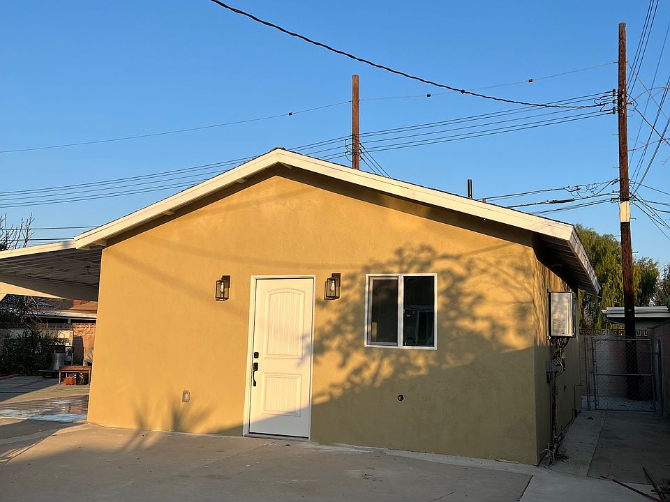Brand new, just finished ADU Garage Conversion. Tons of outdoor space. Includes 462sqft ADU, plus 243sq ft side yard/patio, plus ~243sqft back yard, plus ~2000 sq ft of driveway leading from the street to the ADU. Could fit about 10 cars on your portion of the driveway.