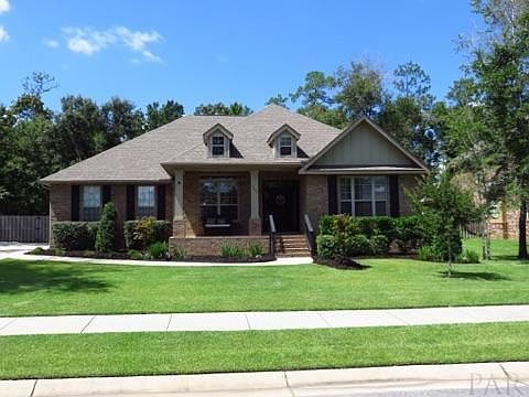 This Beautiful ALL BRICK home is located on a prestigious lot in Nature Trail, backing up to the Nature Preserve - NO ONE will be building behind you! Offering a split, open floor plan with 5 Bedrooms, Formal Dining Room & an Office. Boasting beautiful hand-scraped hardwood floors in the main living areas, tile in the kitchen and bathrooms and carpet in the bedrooms. The large Kitchen has plenty of cabinet space and offers stainless steel appliances, island, granite counter tops, under cabinet lighting, designer backsplash, wrap-around hop up bar, breakfast nook and large walk-in pantry. The Master Suite is spacious and offers a treyed ceiling, a door that leads to the covered patio, large bath with double vanities, granite, a soaking tub and separate shower. Off of the master bath is a large walk-in closet. All secondary bedrooms are a nice size, and secondary baths offer granite and tub/shower combos. The backyard is fenced and is park-like with beautiful landscaping, hammock and plenty of room to play. There is also an extended 20x24 open patio area to entertain in addition to the covered patio which has plenty of sitting room and a TV to watch while grilling! The owners have also added upgraded lighting, gutters and extra parking space to the driveway. This home is perfect for a large family and a great place to entertain. This is YOUR CHANCE to live in Pensacola's Premier Neighborhood which has 5 miles of Nature Trail and an owner's Lodge, Tennis Courts, Swimming Pool and Playground. Don't let this one get away!!!
