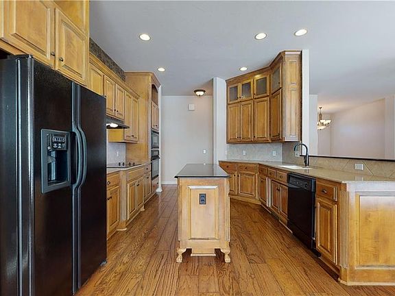 Beautiful lakefront home on a cul-de-sac. This one owner home has a storm shelter in the garage floor and wood flooring in the kitchen, eating space, and hallway. Living has a gas log fireplace. Kitchen has granite counters, a breakfast bar, a bay window in the eating space, an island, pull out shelves, pull out trash can, smooth surface cooktop, self cleaning stove, built in microwave, and a walk in pantry. Master has a walk in closet with built in shelves and a full bath with double vanities, a sitting area, a jetted tub, and a step in shower. The office has a glass door and a closet with shelves and could be used as a fourth bedroom. The middle bedroom has a walk in closet. The hall bath has double vanities and a tub/shower. The laundry room has cabinets, a sink, and a gas and electric dryer hookup. There is covered porch and a large covered patio.