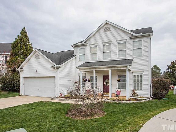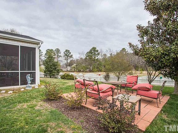 Lake views in Raleigh! Located in The Park at Perry Creek, this well maintained 5bed/2.5bath boasts; an open floor plan with laminate wood floors throughout the main floor; a spacious living room with a wood burning fireplace; first floor master with brand new carpet, and a private en suite bathroom with dual vanity, garden tub and a walk in closet. Upstairs are 4 bedrooms and a loft space, perfect for an office or playroom. Don't miss the screened porch, fenced in yard, pristine landscaping and more!