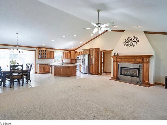 - Features: Built-in Features, Cathedral Ceiling(s), Fireplace, High Ceilings, Primary Downstairs, Vaulted Ceiling(s), Natural Woodwork