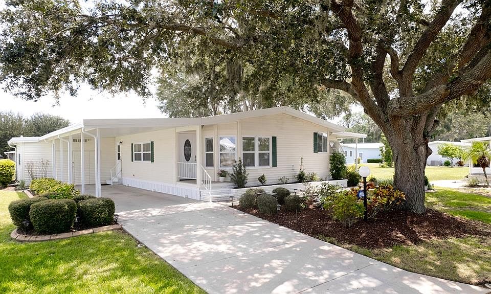 Welcome to Imperial Lake Estates! The minute you pull up on your cul de sac, the large oak trees greet your entrance. This wonderful 2 bedroom, 2 bath home has more than curb appeal. Light and bright with an open floor plan, spacious living room, dining area and kitchen with breakfast bar. This home is perfect for entertaining. Off the living room is located a sunroom and crafts room. If storage, hobbies or just a need for additional space this is your home. Located off the crafts room is a screened/caged patio. If you enjoy morning coffee this oversized yard with large oak trees has a swing to enjoy sunrises. Lots of remodeling was done and the master bathroom and hall bathroom have new tile and vanities. There is a large workshop/storage/additional car parking or golf cart parking. Laundry room has been brought into the main home. Imperial Lakes Estates is a premier 55+, land owned manufactured home community centered around a 65-acre spring fed lake. Offering plenty of amenities, including an updated clubhouse, with auditorium, dance floor, stage, kitchen, library and game room with pool tables. There are 2 heated pools, a spa, and activities include water aerobics, tennis, shuffleboard, horseshoes, and much more. Close to shopping, restaurants, public golf courses and easy access to I-75 and Sarasota, St. Petersburg and Tampa. Don't miss out, schedule your exclusive showing today!