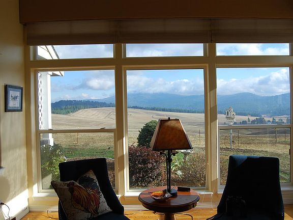 Panoramic view from every room in this amazing home. Perfect horse set up, fenced and cross fenced 10 acres with 40x44 barn/shop. Lots of grassland and nice mature trees for that private country setting. Sellers have upgraded everything with high quality features such as granite counters, new kitchen, hardwood floors, tiled bathrooms and much more. 3 car garage has built in cabinet storage and work bench. Full basement insulated and rooms framed for you to finish