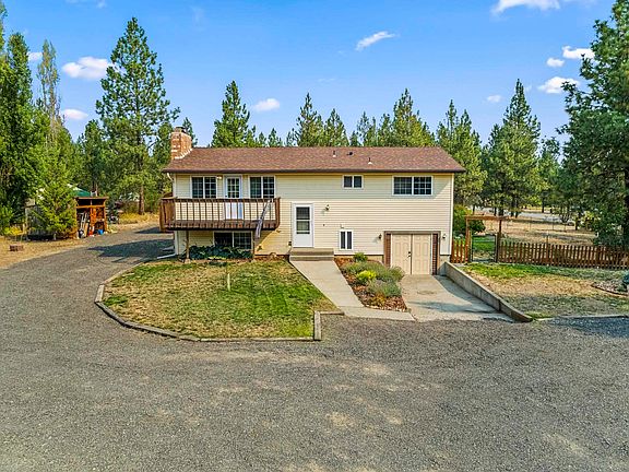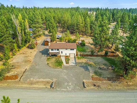 Live the good life in this 1800 SF, 4 bedroom/2 bath country home on 2.75 acres. Enjoy the views the property offers from your front deck, back deck, fire pit, or seating area in the yard. Great storage in the large kitchen with ceramic tile flooring AND the upright freezer stays. The backyard is a gardener's delight! Nicely decorated with a country flair. There is a 10X20 barn, a 12X16 wood shed, a tool shed, and RV parking. There is even an improved shooting area on the property for safe target practice. The vented, heated, and insulated shop area in the basement has a tool bench, built in shelves, and double doors for easy access. Efficient mini-split installed for heat and cooling. Natural gas is available at the road. Have completed the DNR forestry thinning program to be a FireWise Property. Highly desirable area. Easy commute to Spokane, FAFB & EWU.