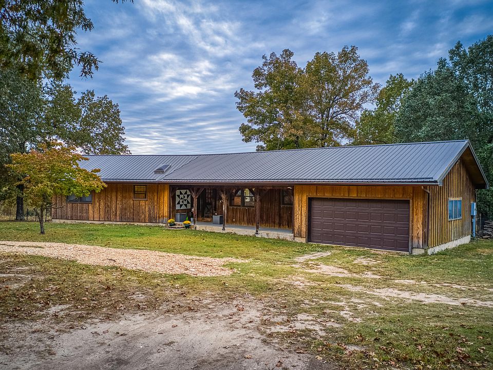 Come take a look at this charming 3 bedroom 3 bath home tucked away on over 81 acres of ultimate privacy. You'll love the open floor plan, covered front porch, back deck, butcher block countertops, spacious living area, and new metal roof. Need more square footage? Finish out the basement and make it your own! 40 X 60 shop complete with electric, concrete floors, and 14ft sliding doors. Established pasture with more to be reclaimed, fully fenced and cross fenced with 4 ponds, and deer and turkey abound. Only minutes from Bull Shoals Lake leaving you with endless recreational opportunities at your fingertips. Don't miss out on this spectacular property!
