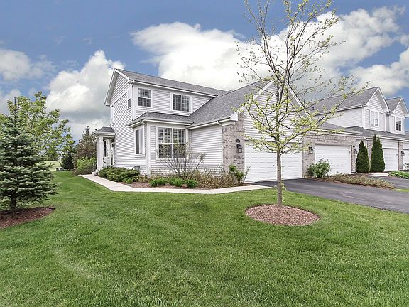 This is not your standard townhome! This former model stands above the rest! Excellent cul-de-sac location overlooking the 12th hole of pristine golf course! Partial brick front with private side entrance! Bright and open living room with gas log fireplace, accent lighting, hardwood flooring and French door to the private patio! Stunning kitchen with custom white cabinetry with crown molding, stainless steel appliance, granite countertops, extra recessed lighting and separate eating nook! Rare 1st floor master bedroom with vaulted ceilings, hardwood floors, walk-in closet and upgraded garden bath with soaker tub, separate shower, oversized dual sink vanity and custom tile work throughout! 2nd floor loft is great for office or separate living area! 2nd floor bedroom with walk-in closet and direct bath access! Convenient 1st floor laundry with extra cabinets! Huge deep pour basement with bath rough-in awaits your finishing touches! Upgraded plantation shutters throughout! Heated garage! Upgrades galore! Close to shopping!