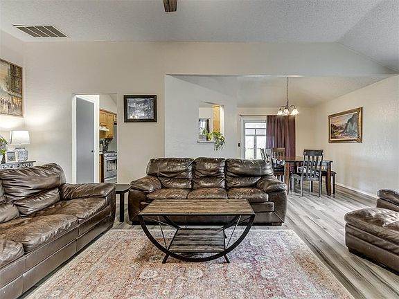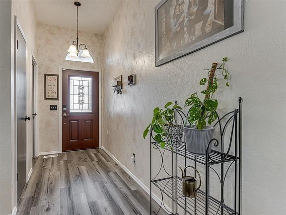 Welcome home to this meticulously updated gem nestled in the heart of the Moore school district, offering both style and functionality for modern living. Step into luxury as you enter through the new front door (installed in 2019) and into a spacious living area adorned with new vinyl floors that flow seamlessly throughout the entire home. The living space, accentuated by a handsome brick fireplace featuring gas logs and built-in bookshelves, provides the perfect backdrop for cozy gatherings or quiet nights in. The adjacent kitchen, open and inviting, boasts beautiful stainless steel appliances, including a gas stove, complemented by a pantry for ample storage. The dining area offers plenty of space for entertaining, with the flexibility to accommodate a large table and expand when guests arrive. This home is not just about aesthetics—it's about quality and peace of mind. With all new windows, a new garage door, and updated baseboards and trim, every detail has been carefully considered. Plus, enjoy the added security of a storm shelter for peace of mind during severe weather. The master retreat is a sanctuary unto itself, featuring an oversized bedroom and an ensuite bathroom complete with dual sinks, a newly tiled walk-in shower, a luxurious soaking tub, and a large Australian walk-in closet—a perfect retreat after a long day. Two additional generously sized bedrooms share a hall bath with a newly tiled floor, providing ample space and comfort for family and guests. Conveniently located just minutes from I-240, this home offers easy access to all the city has to offer, making commuting a breeze. With major updates including a new HVAC system in 2020 and a new roof in 2022, this home offers not only great bones, but also peace of mind for years to come! Don't miss the opportunity to make this your forever home—schedule your showing today!