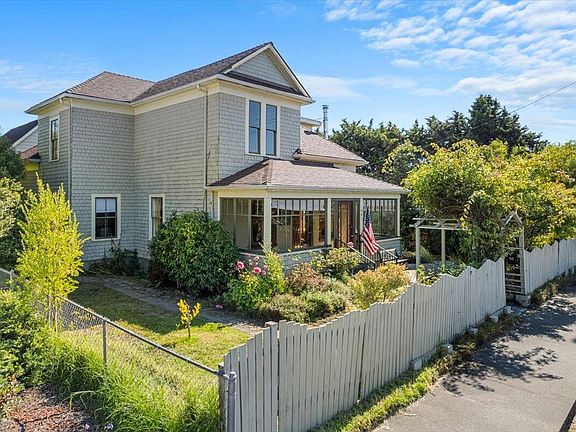 Discover this charming Victorian-era farmhouse, situated in downtown Fortuna that blends historic elements with modern comforts. Step inside to a sunlit, glass-enclosed front porch that welcomes you into the formal living room, featuring a cozy wood stove and hearth. Across the hall, you'll find a spacious family room/parlor. The formal dining room showcases original built-in cabinets, adding to the home's character. The kitchen boasts tall ceilings, granite countertops, stainless steel appliances, a vegetable sink, and a custom center island, all complemented by a convenient breakfast bar. A generous mudroom and pantry offer ample storage space.