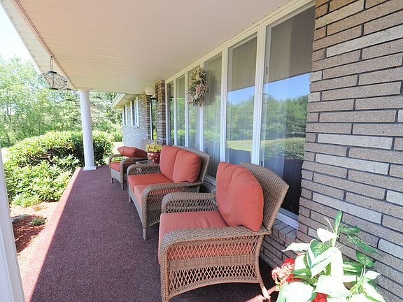 Delightful property with 5 acres, some professional landscaping and the back land is wooded. Lovely updated kitchen with granite countertops, and plenty of cabinetry. Patio doors to covered deck. Large window in living room, oak trim and oak stairs to lower level. Lower level has spacious family room with stone wall on and around fireplace. Den presently used as 4th bedroom.