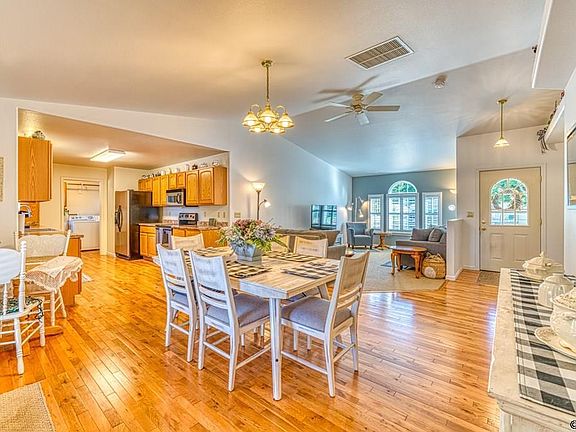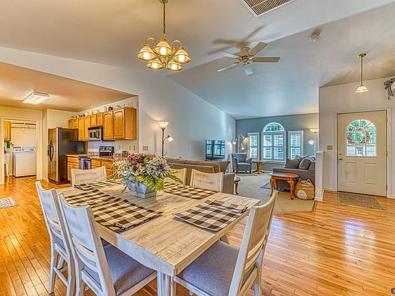 Beautiful, move-in ready rancher on a beautifully landscaped lot! Nice open floor plan with cathedral ceilings and plantation shutters in the home, and ceiling fans to move that cool air around. Hardwood floors in kitchen, entry, and hall, Wide galley kitchen with plenty of cabinets, two pantries, and nice countertops. Very nice master suite with walk-in shower and walk-in closets, plus two more roomy bonus bedrooms. Separate laundry room with laundry tub and Ranaii on-demand hot water. Covered patio, fenced back yard, 20 x 10 storage building, mature shade trees, RV parking.
