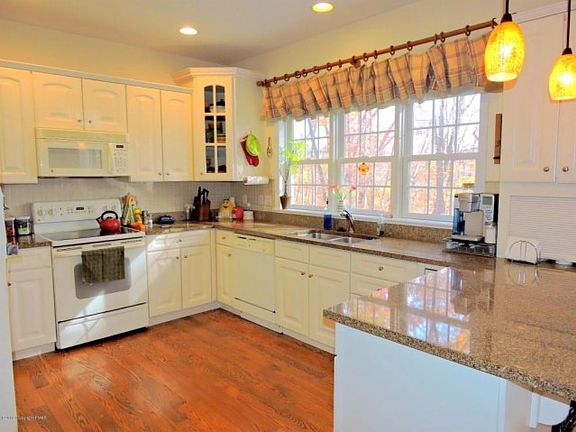 STROUDSBURG Former AWARD-WINNING Builders Model Home is A MUST SEE! NO DUES! Conveniently Located Close to Town Just Off Route 611 for Shopping Yet Tucked Away on Quiet Street w/ Greenbelt! Home Offers Gorgeous OAK HARDWOOD FLOORS Through Main Level! 2-Story Family Room w/ Dramatic FLOOR-TO-CEILING STONE FIREPLACE & Stunning Wall of Glass Windows w/ Southern Exposure! Modern Kitchen has GRANITE COUNTERS, Ample Cabinets, STAINLESS STEEL APPLIANCES & BREAKFAST NOOK! Formal Dining Room w/ Light Up TRAY CEILINGS, PILLARS & Crown Molding! 1st Floor DEN/OFFICE has Glass French Doors! MASTER SUITE w/ Tray Ceilings & Expansive WALK-IN CLOSET Plus BATH SUITE w/ Jetted Soaking Tub, Separate Shower & Water Closet! Bedroom 2 has DOUBLE CLOSET & BONUS PLAY ROOM! Call Today for Your Private Showing!