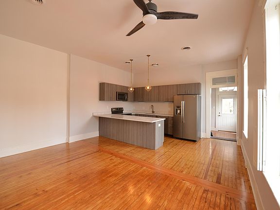 AVAILABLE IMMEDIATELY Beautifully renovated 1500 sqft. 2bed/2.5 bath apartment in the Heart of Nulu/Butchertown. The spacious, creative layout allows for many usable options including an apartment + business (with separate entry door), live + work space, or an apartment plus Airbnb/VRBO rental (with separate entrance). The light filled apartment features 2 Master Bedrooms and 2 private full baths. The main living space includes brand new kitchen cabinets, quartz countertop, and GE slate appliances, restored and refinished original hardwood floors throughout, laundry room(with an included washer and dryer), and an additional bath for guests. The front Master Bedroom has tall historic windows overlooking Washington St. - considered one of the most beautiful and walkable neighborhood streets in Louisville. The back Master Suite has a large walk-in closet with additional lounge/study area, as well as a separate entry door (perfect for 2 professional roommates!) Private veranda and deck with New Orleans feel make watching the Friday night Slugger field fireworks a joy! 1 year lease. Owner pays for Water Bill, and Trash Bill. There is no Gas, Tenant pays any other utilities (Electric, Internet etc).