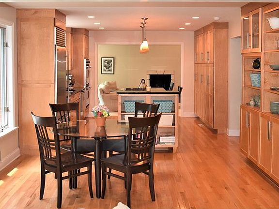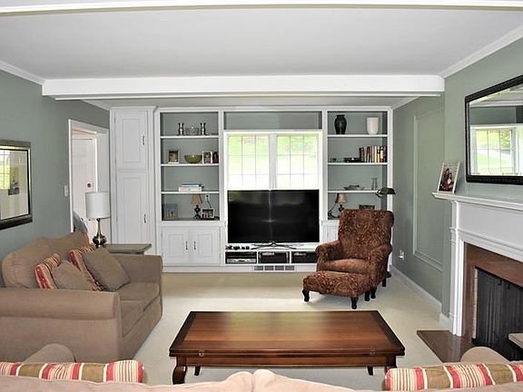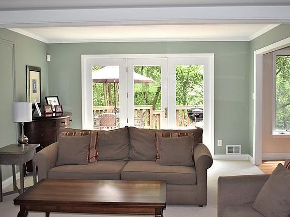 Open floor plan. Bright and spacious entry. Front to back LR w/ crown & picture mldg, boxed beam ceil. neutral carpet, dbl wdw overlooking front yd flanked by blt ins, gas frpl & triple French door to deck. LR opens to huge Kit w/ hw flrs, abundant shaker style cabinetry, din area, granite counters, high end appliances and center island. Over sized doorway leads to bright & beautiful Family Room w/ vaulted boxed beam ceiling, dec frpl, bay wdw with wdw seat and storage cubbies below, blt in bookcase with dentil mldg, neutral berber carpet. Just off FR is light filled DR & Den with berber carpet, walls of wdws, bead board ceil, exposed brick wall & door to front yd. Spacious Mstr with loads of light, en suite, walk in clst & hw flr. 3 addl 2nd flr BRs all with hw flrs and great closet space. 4th br set up as dressing rm, armoires can stay. Daylight Gamerm w/ log brng frpl, high ceil, French door to covered patio. 3 car gar, half bath and loads of storage also on lower level