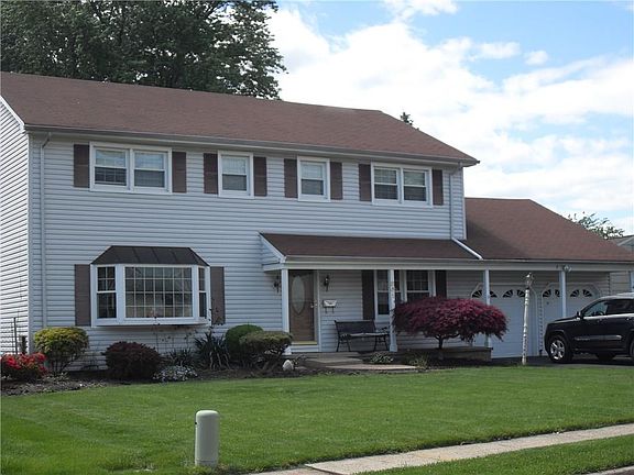 Center hall colonial home with tons of curb appeal! 4 bedrooms, 2 1/2 baths, center island kitchen, formal dining room, family room with wood burning fireplace for warm cozy nights, master bedroom with bath and walk in closet. Maintenance free vinyl siding, 2 car garage, fully fenced backyard with deck. Conveniently located near NYC transportation, shopping, library.