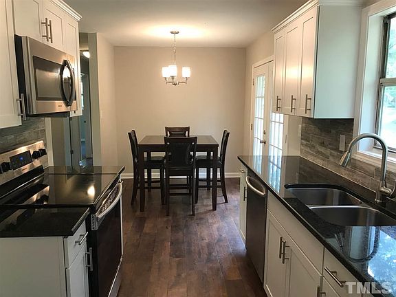 This 4 bedroom/2 bath house has been completely remodeled, with a new roof, and new HVAC. The interior features new white Shaker style cabinets, granite countertops, stainless steel countertops, and tile backsplash. Gorgeous water resistant wood laminate flooring, new carpet in bedrooms. Both baths completely remodeled with white subway tile surrounds. New French doors lead to deck overlooking private back yard.