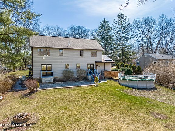 Step outside and discover the expansive, nearly half acre yard. Enjoy the slate patio, fire pit, deck, and above-ground pool - ideal for entertaining.