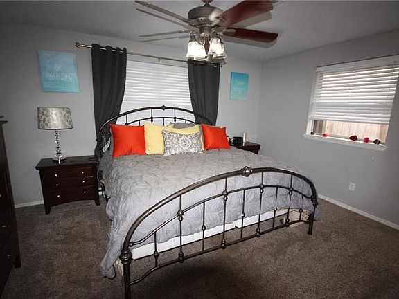 Great starter home in quiet neighborhood. From the cozy front porch you will feel right at home here. Updates throughout include granite countertops, new heating unit, hot water tank and fresh paint. Spacious master bedroom. Inside utility; Huge backyard includes outdoor storm cellar, outbuilding and covered patio. Carpet allowance; Location, location, location....Close to schools, shopping and highways.