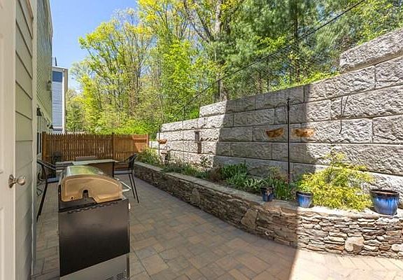 Designer décor and finishes in move-in ready 2010 newer construction. 1st level unit with gorgeous private outdoor space, patio and garden. Great for entertaining! Carefree open concept Living/Dining/Kitchen space with granite breakfast bar. Custom California closets and window coverings, ceilings fans, in-unit laundry. Energy efficient and comfortable bright space. Gas line for grill and water for garden inside private fenced space just for you. Convenient to Brookline, Chestnut Hill, Newton, Boston, and freeways. Legacy Place Lifestyle center nearby and new restaurants and shops on Centre Street within a short distance. Urban convenience within quiet suburbs. Pet friendly, no smoking building
