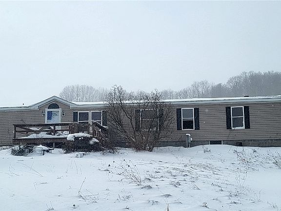 Imagine your own affordable building lot in Homer Schools that is ready for a new double wide, modular, tiny home or your favorite style of new home. This 0.64 acre hillside lot has a view of Fall Creek wetlands, just south of Lake Como and a bird sanctuary. Tons of wildlife walk through the yard or fly overhead. Currently the property features a 1995 double wide has 1456 sq ft, 3 bedrooms, 2 full baths, laundry/mud room, and an open kitchen/living room/dining room. This home is not habitable and requires a full remodel or removal. Seller is selling it as-is. Cash only. All buyers must be escorted by a licensed agent only.