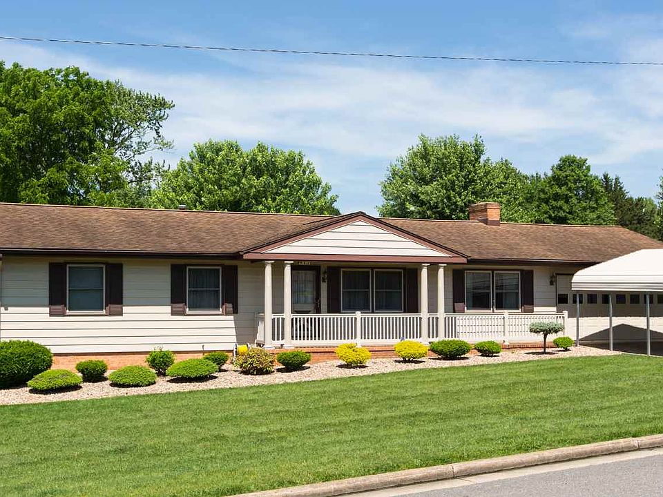 Traditional ranch home of 1424 square feet featuring living room, kitchen with adjoining dining area, family room with fireplace, master bedroom has half bath, full hall bath and two additional bedrooms. Double car attached garage. Large level corner lot. Walking distance to downtown.