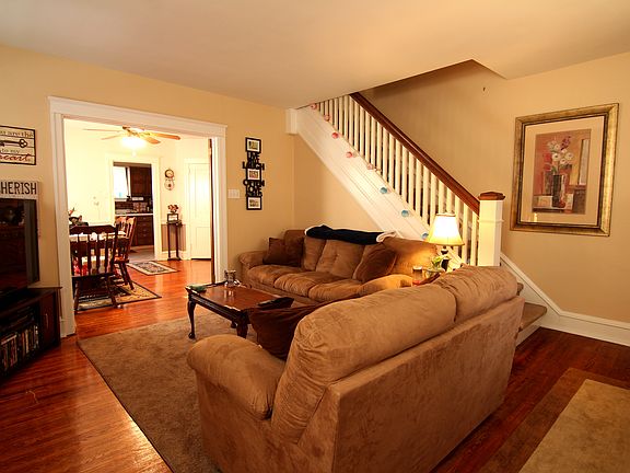 Located on a shady street in Pottstown's desirable North End you will find this lovely 3 bedroom brick twin. Large covered front porch welcomes you inside. The first floor offers living room, large formal dining room with double glass doors and spacious eat-in-kitchen. There are beautiful hardwood floors on the main level. Second floor has three bedrooms and an updated full bath. The walk out basement has a large finished bonus room which many of these homes do not offer. Outside you will find off-street parking for 3-4 cars, nice shady yard, brick patio and fire pit area for summer entertaining! With newer heater (serviced annually), newer oil tank, updated 100amp electric and professional basement waterproofing, this home offers the peace of mind that you are looking for!