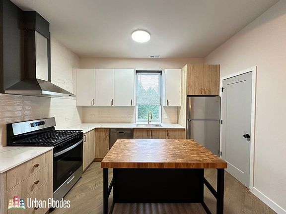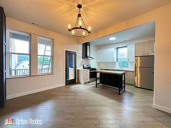Brand new gut rehabbed Ukrainian Village two bed, one bath features central air, gas forced air heating, hardwood floors, upgraded kitchen with quartz countertops,, new stainless steel appliances, dishwasher, fridge, gas oven/range with exhaust, in-unit laundry, large, open living and dining rooms, queen size bedrooms, walk in closets, new bathroom, and easy street parking!