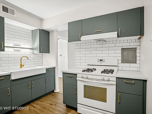 Beautifully updated for the fussiest buyer! Brand new flooring, gorgeous kitchen cabinets, new double farmhouse sink with brass faucet. Spacious living room and dining room with new on-trend light fixture. Large bedroom with an entire bank of closets. The bathroom looks like a page out of pottery barn with updated vanity, mirror, light, and gorgeous accent wall. Newer A/C! The building offers wonderful amenities: sauna, exercise facilities, party room, in-ground pool and gas grills outside the pool area to add to your summertime fun! Assessment includes water, heat and gas! Great location with easy access to shopping, great restaurants and expressways.