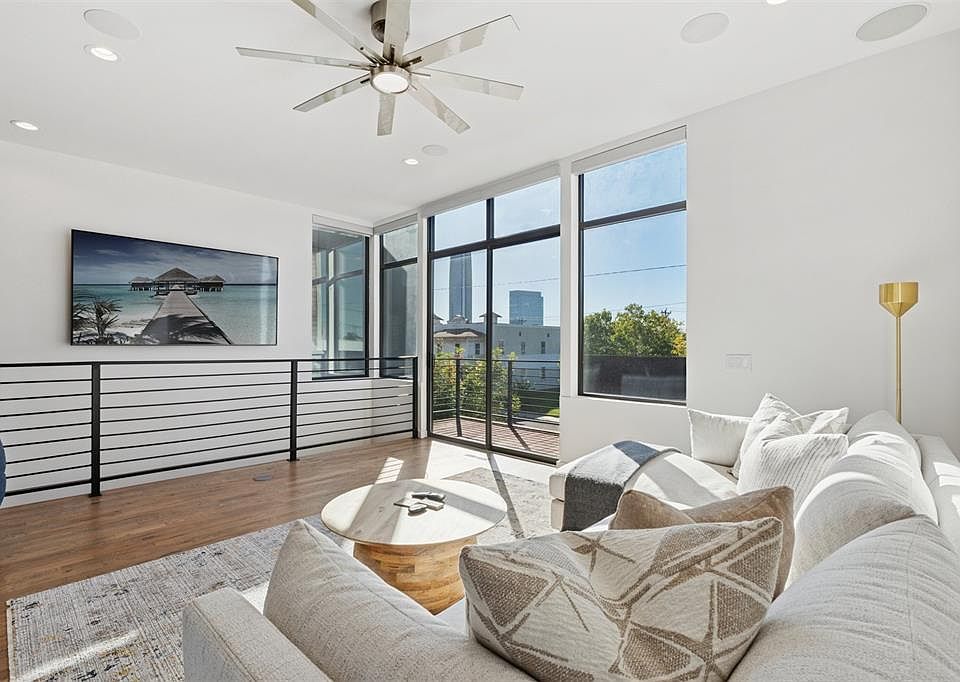 Welcome Home to The Dwellings at SOSA! This multi-level modern home is the epitome of downtown living in OKC in the South of St. Anthony district affectionately called, SOSA. Built in 2017, this home is 1,997sf and hosts 3 bedrooms, 3.5 bathrooms and a roof top deck overlooking the downtown OKC Skyline! The first level of this home has a bedroom with an ensuite bathroom and a 2-car garage with an epoxy floor. As you wander up the first set of stairs, you will find the living room, dining and modern kitchen. The living room has views of the city and its own step out balcony. The large flatscreen TV was masterfully hung over the stairs and will convey with the home. The kitchen is full of luxury with its premium Fisher and Paykel appliance package. The package includes a 30" electric range, a stainless dishwasher drawer, a panel ready refrigerator drawer and a panel ready fridge and freezer. The granite countertops have pop-up outlets spaced throughout and the peninsula is finished off with a waterfall edge to give it that sleek modern look. Just off the kitchen is also the 2nd level powder bathroom. The 2nd set of stairs will take you to the 3rd level where you will find a guest room, a full hall bathroom, laundry closet with a stackable washer/dryer set and finally the primary suite. The primary suite offers panoramic views of the city. The primary bathroom has a giant walk-in shower with the 2 shower heads, dual vanities, a water closet and built-in storage. The primary also features a long walk-in closet with built-in storage. Finally, the last set of stairs takes you to the 616sf roof top deck. The deck is plumbed and ready for you to enhance it with an outdoor kitchen. This deck gives you a 360* view of the city. Something that very few homes can do. This home is set a part from its neighbors being situated on the corner which allows for 8 additional windows on the West side offering more light. Come dwell in the heart of OKC and experience all it has to offer!