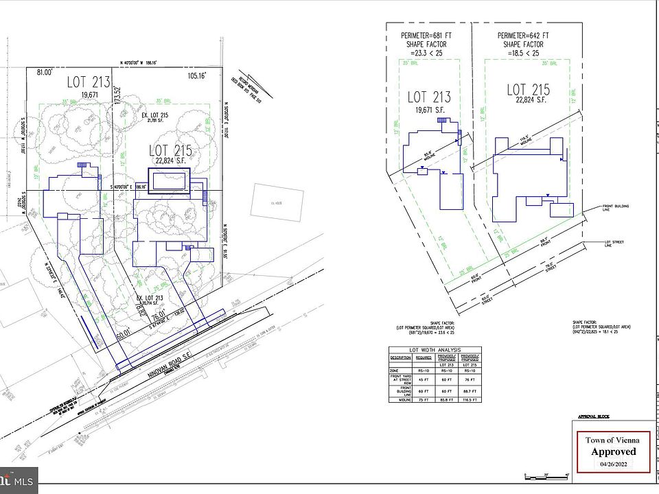This listing is for two buildable lots, already approved by the Town of Vienna. 841 & 843 Ninovan Road. First lot is .52 acres and second lot is .43 acres. Buyer must to adhere to approved site plan or abandon subdivision and build one house. Nice flat lot surrounded by multi million dollar homes, walkable to town and bike trail. Good school pyramid. Full site plan available upon request.