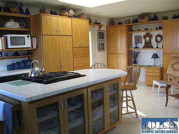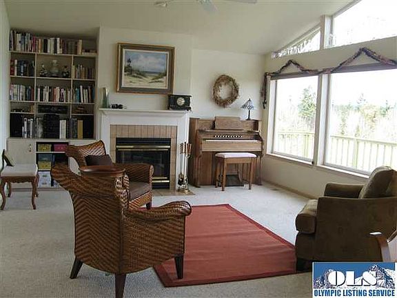This home is perched on a ridge with wide panoramic views toward shipping lanes. Both levels of this lovely home are open to views of Discovery Bay, the Strait and Mt. Baker. Interior finishes are light colors. The kitchen is a large circular floor plan and is connected to the enclosed porch and deck along front of house for good flow. Skylights & walls of windows make it light. The master suite has a luxurious bath. Downstairs has two more bedrooms, full bath, family room, large hobby room & storage room.
