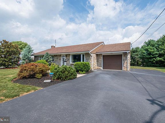 This beautifully landscaped, solid stone, Blandon ranch had one owner who loved this home. Caring for it by installing a cement tile roof which was marketed as a "forever" roof, a Quaker Maid solid cherry custom kitchen with Corian countertops, SimpliSafe security system attached to every door and window in the home (deactivated for showings), brick fireplace fueled by propane in the basement family room, a 28' X 12' patio with cedar wood porch roof which is resistant to pests, plaster walls, large walk-up attic, 22' X 12' double door shed with 3' cement foundation, generator hookup in the garage, parking for 8 vehicles, and hardwood floors are under all the carpeted areas. Please come and view it for yourself and see if you fall in love too.