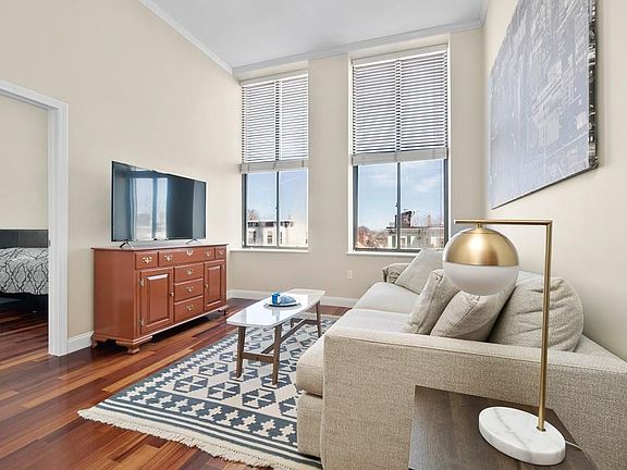 Welcome to The Bulfinch condominiums, a former school turned condos offering impressive 12' high ceilings and 9' windows which drench the unit in sunlight. The open floor plan centers on a entertainer's kitchen with cherry cabinets, shining hardwood floors, a granite peninsula and breakfast bar with stainless steel appliances and a powerful exhaust hood for cooking. The master bedroom offers a one of kind, massive walk-in closet with organized shelving. 2 additional bedrooms have ample closet space and natural light making one ideal for a home office. Spacious and clean dual vanity tiled bathroom. Private storage and a brand new washer/dryer are in unit. Brand new HVAC system can be controlled from your phone. The private balcony is perfect for coffee or dining while overlooking the property's lush landscaping. 2 deeded parking spaces make this condo the complete package. Convenient to the T, Longwood Medical Area and numerous universities. Showings begin on Wednesday afternoon.