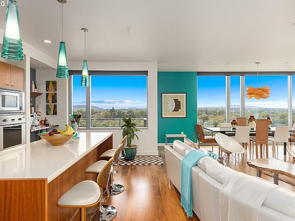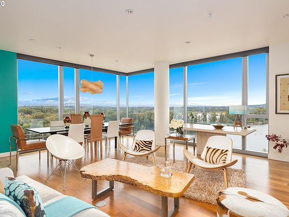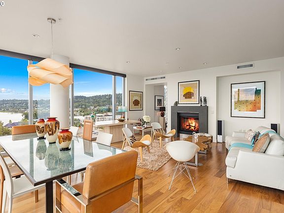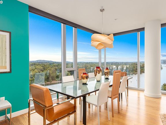 Luxurious SE corner home in the highly sought-after Atwater Place, with expansive river views from every room. This 2 bedroom, 2.5 bath + den home is complete with a spacious master suite, Mount Hood & Mount St Helens views, 2 decks, fireplace, premium appliances, large pantry, large utility room, 2 side by side parking spaces & storage unit. Upgraded smart-home lighting, motorized shades & keyless entry. Enjoy the best of South Waterfront living!
