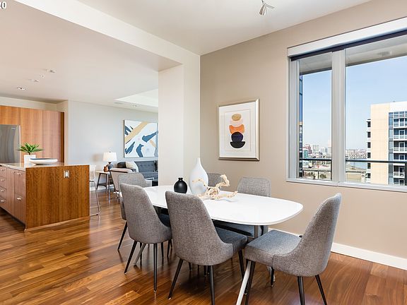 Breathtaking river and mountain views from the South Waterfront's premier building, Atwater Place. This high tower home offers protected panoramic river, mountain and city views. This 1 bed, 1.5 home includes premium finishes, electricity in island, built-out closets, lavish storage space throughout, deeded parking and more. In this exceptional LEED Certified building, you have quick access to OHSU, waterfront parks, farmers market, street car, coffee shops, local retailers and more.