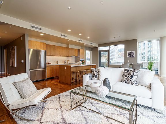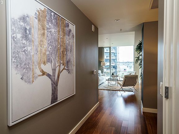 Enjoy modern living at this premier south waterfront condominium. Large floor-to-ceiling windows flood the space w/ natural light. Hardwood floors throughout&a modern gourmet kitchen with stainless steel appliances. Right on the waterfront, this urban oasis is blocks from many local cafes&shops where you can enjoy city views. Access to abundant paved pathways&space to explore the outdoors, all while being in the heart of the city! Newly renovated meeting room, deeded parking&concierge included.